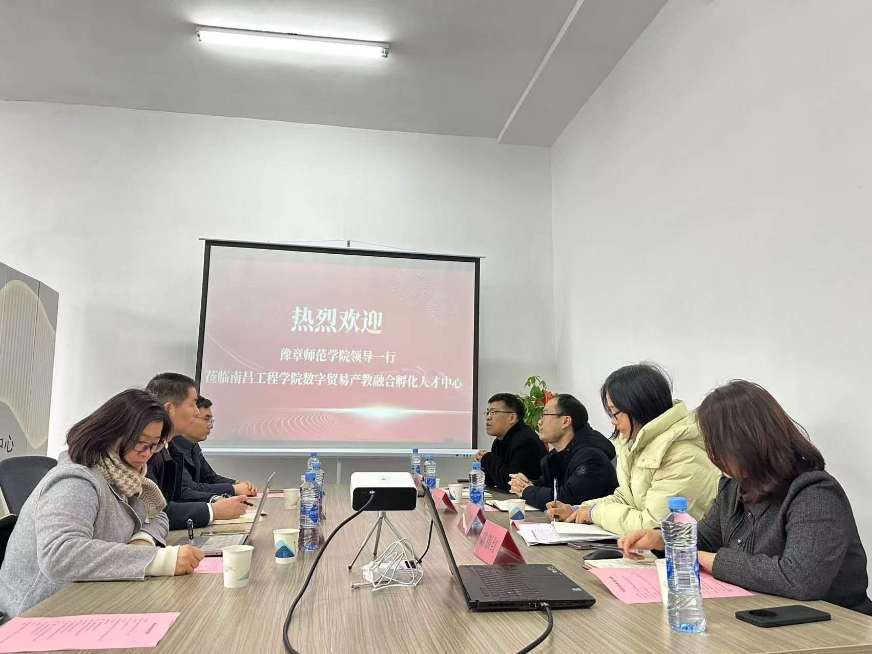 3月10日上午,豫章师范学院外国语学院院长郭利一行3人来我院数字贸易产教融合孵化人才中心调研交流。副院长阚大学、郑智和相关工作人员参加座谈。
