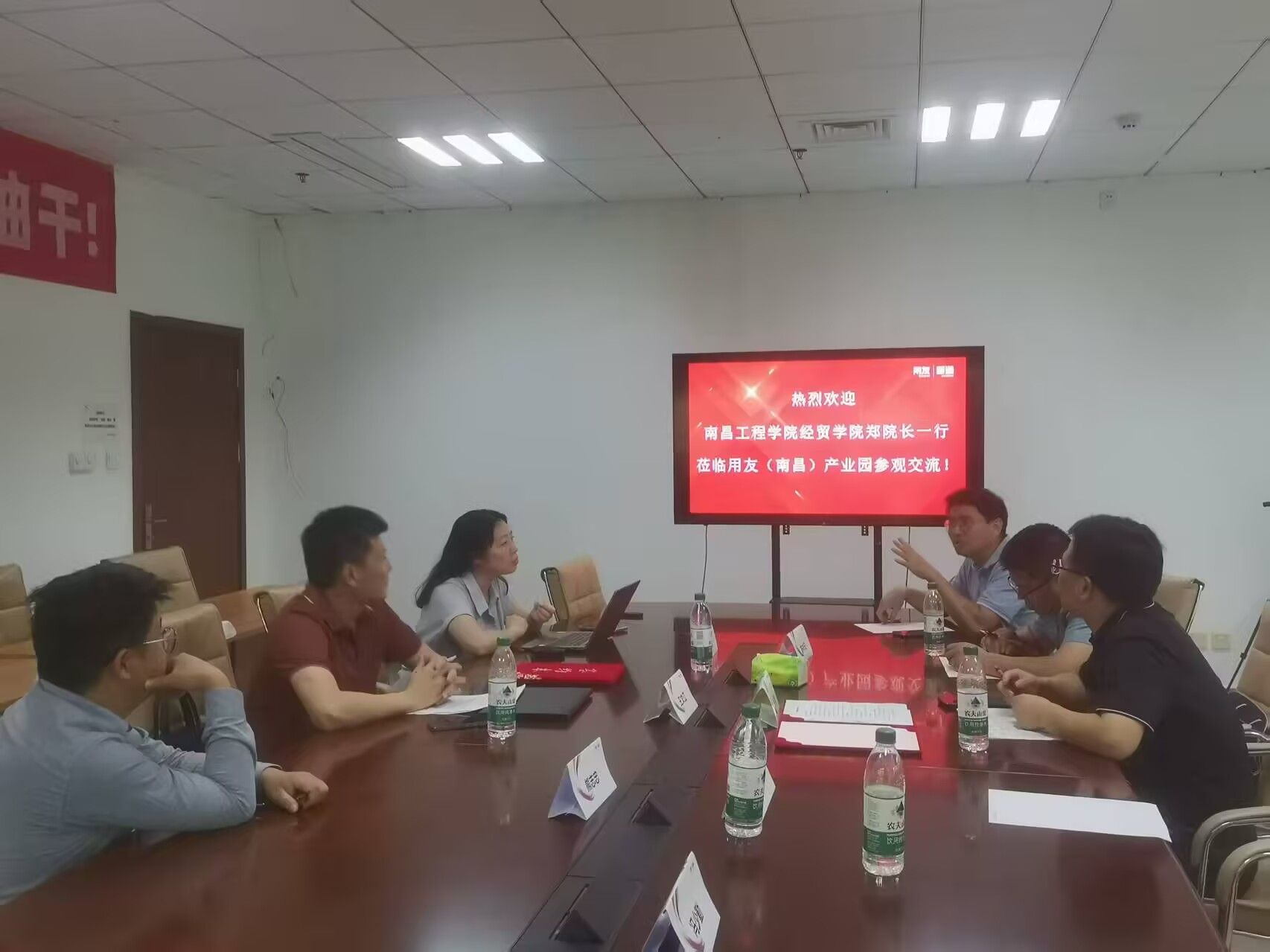 用友新道江西分公司副总经理王文江、产教融合总监熊志忠、教育规划顾问李思热情接待了学院调研团队。校企双方分别介绍了各自的基本情况及合作愿景,并就产教融合品牌专业建设、核心课程设计、产教融合路径、学科建设、学生培训和就业等重要议题展开了深入交流,双方达成一致意见,签订了产教融合实践教学基地协议。最后学院调研团队看望了在用友产业园(南昌)进行专业实习的2022级财务管理学生。
