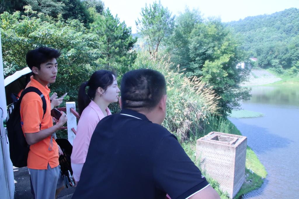考察友谊水库。水利是农业的命脉,为更好了解流芳乡的水利基础设施建设,实践团成员来到位于老山村的友谊水库实地考察水库的作用、库容、大坝水土保持和生态建设情况。调研中,成员了解到友谊水库是一座以灌溉为主兼具防洪、供水、养殖等综合效益的小型水库,是本地村民饮用水的水源。
