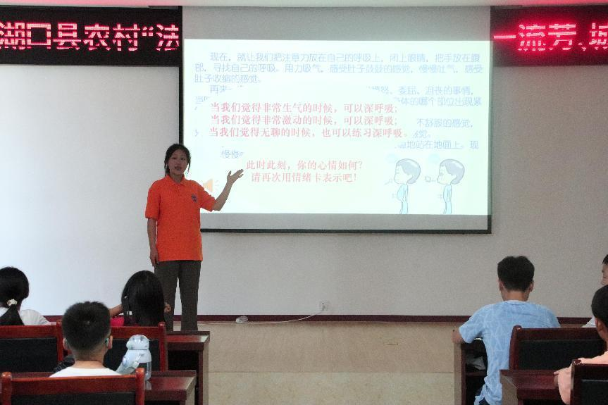 三、心心交汇促成长,守护童心保健康。为帮助小朋友更好地管理自己的情绪,实践团成员通过播放生动有趣的视频让小朋友们了解情绪的种类,玩“击鼓传花”和“体会呼吸”小游戏教会小朋友们有效控制情绪、感受并接纳情绪的变化,引导小朋友们选择用户外运动、唱歌跳舞等方式合理宣泄情绪,掌握处理不良情绪的方式与技巧。课后,成员们开展“心心交汇”的一对一心理辅导活动,倾听小朋友们的心声,帮助小朋友们解决心中的烦心事,为他们的身心健康成长保驾护航。