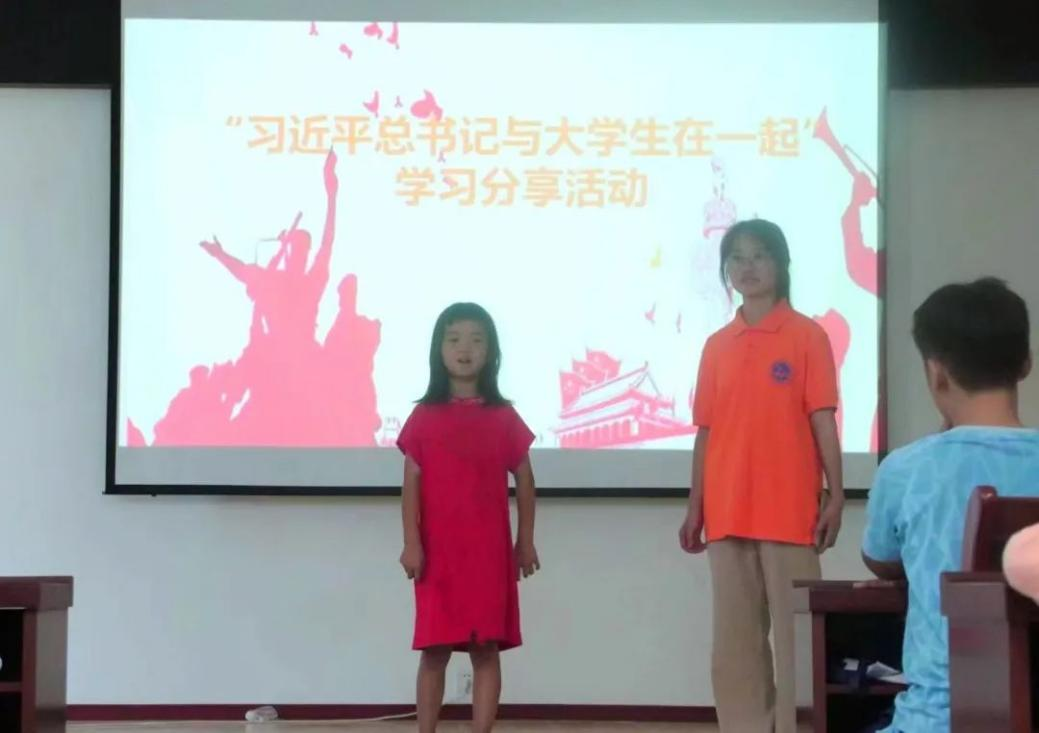 一、厚植家国情怀,赓续红色血脉。实践团成员开展“习近平总书记与大学生在一起”学习分享活动,结合自身专业并分享《习近平著作选读》《习近平与大学生朋友们》等书籍的学习心得,给小朋友们上了一堂生动有趣的“大思政课”,与小朋友一道感悟思想伟力,汲取奋进力量。通过讲述红船故事,带领小朋友们穿越百年,让“红船”在小朋友们心中“启航”;通过组织小朋友观看爱国影片《觉醒年代》,引导小朋友不要忘记无数革命先驱的血汗成就了现在的幸福生活;通过朗诵《可爱的中国》,介绍方志敏烈士英雄事迹,提升小朋友们爱家乡爱祖国的家国情怀。