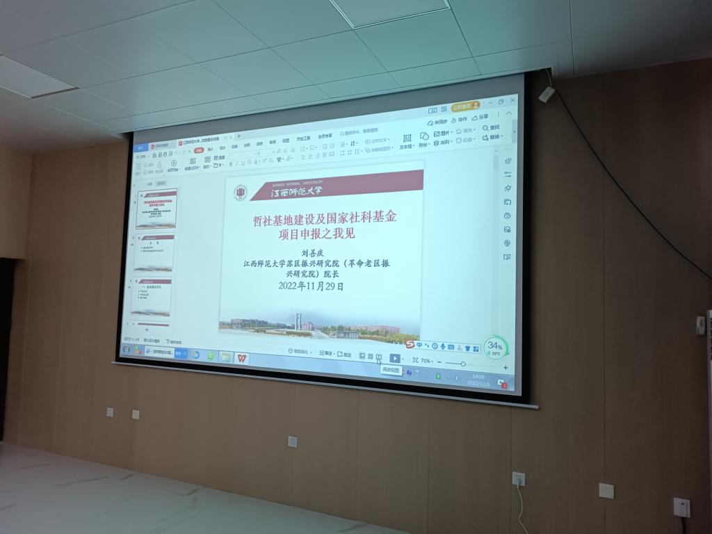 省哲学社会科学基地建设方面,刘教授以江西师范大学的苏区振兴研究院(革命老区振兴研究院)为例,围绕基地的建设特色、运行机制、人员组成、现有成就及规划发展等进行了讲解,为我院的基地建设提供了有益借鉴。