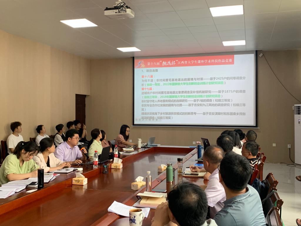 本次分享会由刘义杰老师主讲。在第十八届“挑战杯”江西省大学生课外学术科技作品竞赛中,由刘义杰老师指导的项目获得一等奖的好成绩。分享会上,刘义杰老师分别从赛事选题、申报书、调研、调查报告、阶段性成果等方面进行了经验分享,他结合本次自身的参赛经历,传达了认真准备、认真思考、悉心指导的态度和理念。刘义杰老师强调,要做好“挑战杯”大学生课外学术科技作品竞赛的指导,一要“知关切”,关切社会热点、基层民生问题;二要“有情怀”,有乡贤情怀、家国情怀、学术情怀;三要“能坚持”,坚持才能把简单的事情做到极致。
