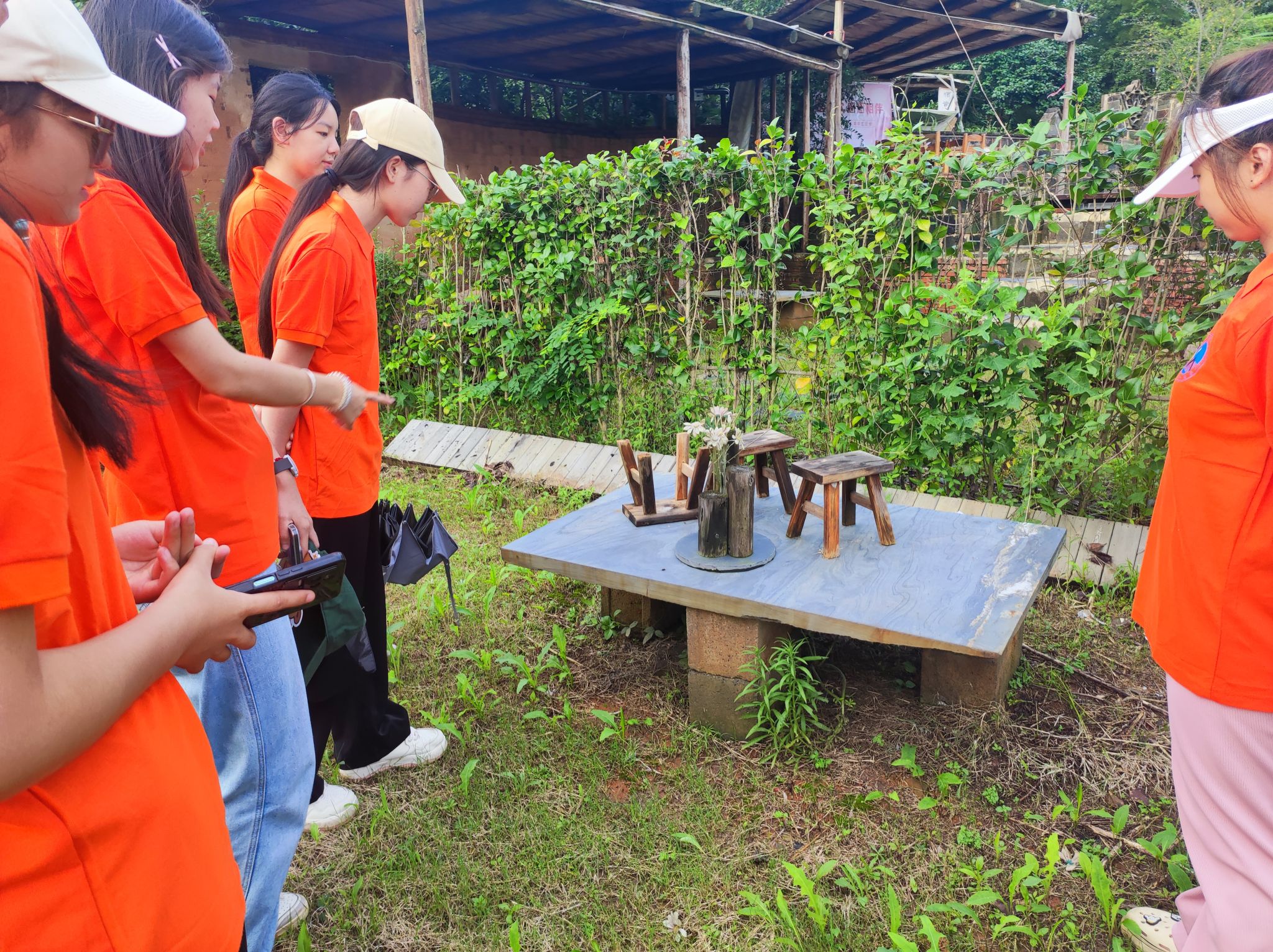 木艺精雕生纹理,手琢岁月韵悠长。植物拓印作为研学基地一项重要活动内容,吸引了众多研学者,也为当地乡村的文旅发展增添了色彩。除了传统的非遗拓印工艺外,实践基地展示的木制手工艺品和嫁接工艺技术也深深吸引了实践团成员的注意。成员们仔细参观了用枯树、木头等废料制作的户外原野风格手工艺品,了解了每一项手工艺成品的由来、制作材料及特殊寓意,极富韵味。
