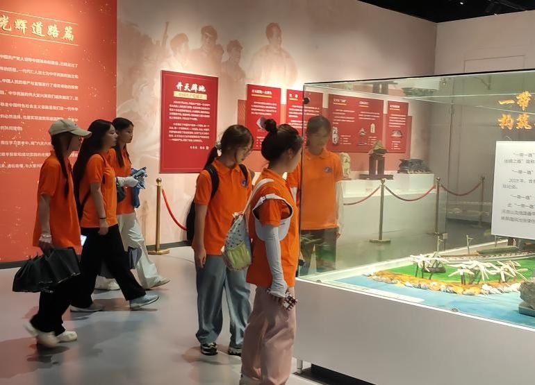 参观共青博物馆。7月8日上午,实践团成员走进了共青城市博物馆,深入了解共青城发展史。进入博物馆,实践团成员就被一座宏伟的垦荒雕塑深深吸引,它仿佛在向我们讲述一群热血团员青年在共产党的带领下,在荒滩上建立起一座充满青春活力的共青城的故事。