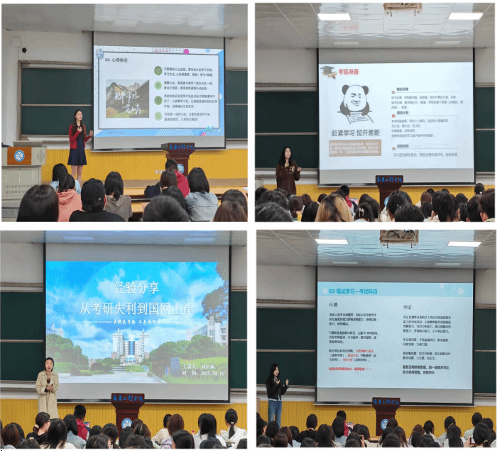 本次培训会邀请2021级毕业班学生代表分享就业成功经验。考研学生代表从目标院校选择、备考规划、心态调整等方面剖析考研核心策略;考公学生代表结合笔试技巧、面试实战及政策解读,系统梳理考公全流程;国企就业学生代表围绕国企招聘特点、岗位匹配及职业发展路径展开讲解。毕业生代表以亲身经历为在场学生提供了可借鉴的实践路径,现场互动热烈。